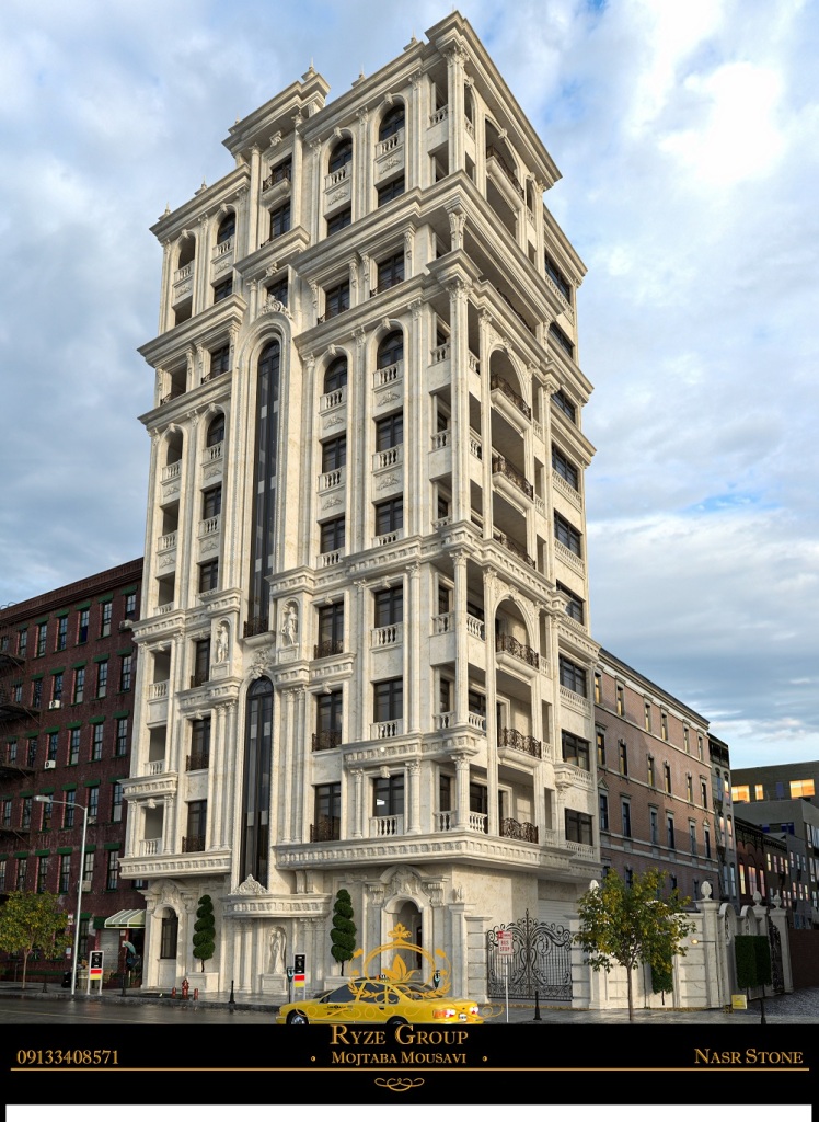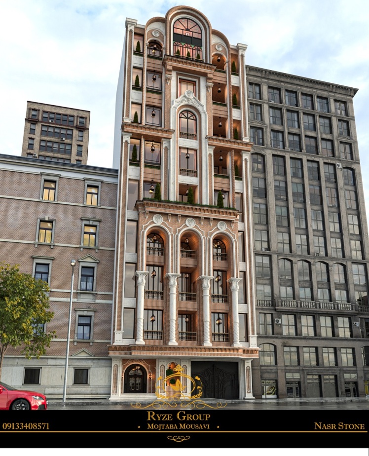 نمای پست مدرن ترکیب ابزار سنگی و اجری